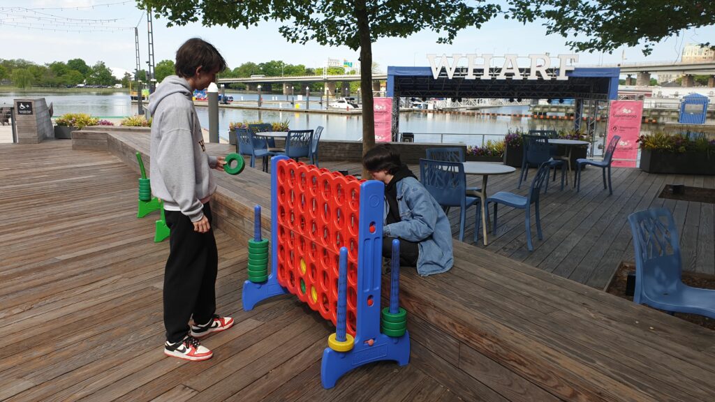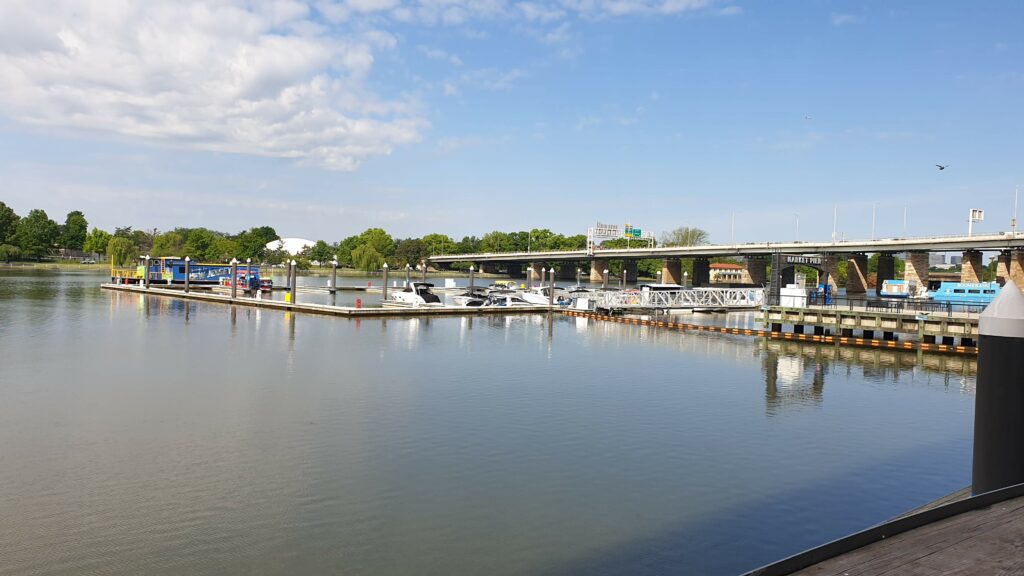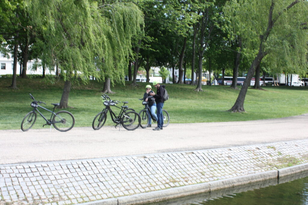 Départ vers 8h30 pour aller récupérer notre moyen de transport de la journée à une petite demi-heure de métro. On s’arrête dans un Starbucks en chemin pour prendre un petit-dej et nous balader avec notre gobelet de café comme tout le monde ! Le loueur de vélos se trouve dans la marina sur un bras du Potomac. Nous en faisons un petit tour mais c’est très calme à cette heure-là.