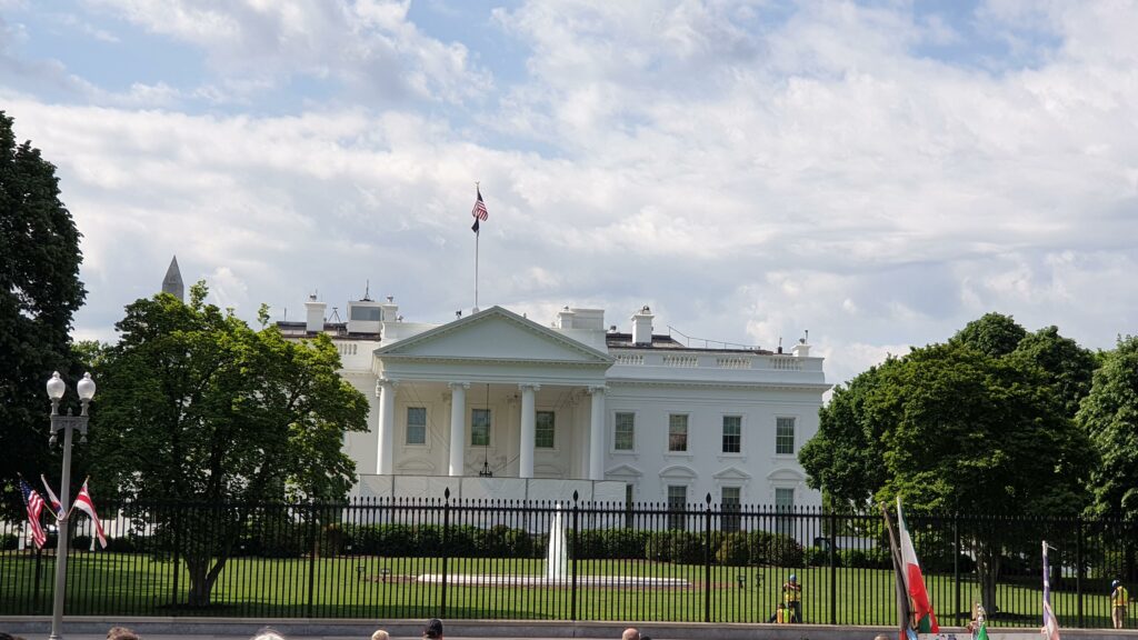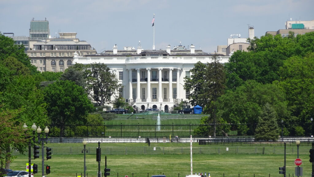 Puis direction la Maison Blanche, plein nord. Les bâtiments officiels sont aux couleurs de la Corée du Sud. Joe BIden reçoit le président coréen en ce moment. Ci-dessous donc la Maison Blanche, côté pile et côté face (un peu plus tard !).