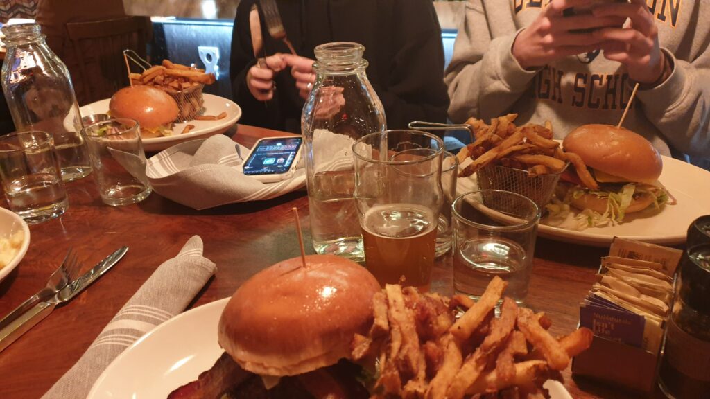 Petit passage à l’hôtel puis nous sortons dîner dans un resto américain, Founding Farmers ! Mais un resto américain avec des produits locaux et équitables ! Burgers au programme of course !