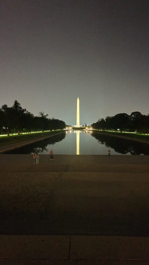 Et puis ensuite, les parents courageux ont décidé de refaire un tour au Lincoln Memorial de nuit ! Les enfants ont déclaré forfait ! Dommage parce que la reflecting pool était superbe ce soir.