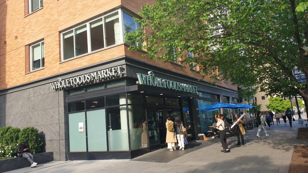 Et juste derrière, une chaine de supermarchés que nous avions découverte à New York, Whole Foods Market (rachetée entre temps par Amazon). C’est vraiment sympa avec toute l’abondance qu’on imagine aux Etats-Unis…